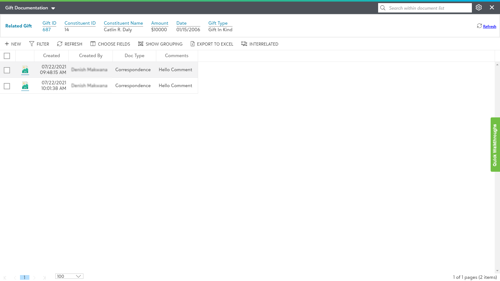 - Now, you can see the list of related documents for the selected records as shown in the below screen. Click on the document to open it in the item viewer.