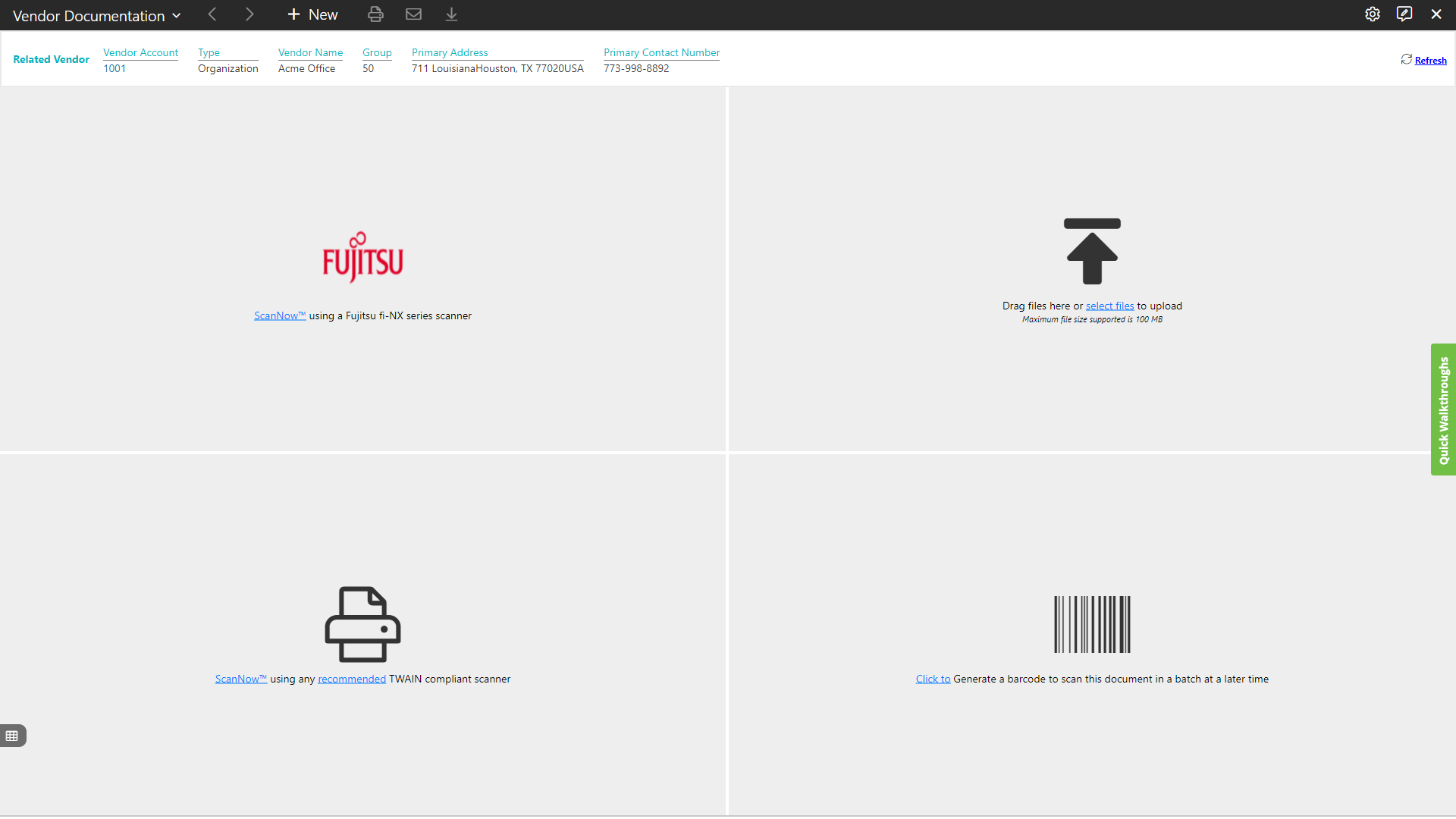 - Click to generate a barcode to scan the document in a batch at a later time