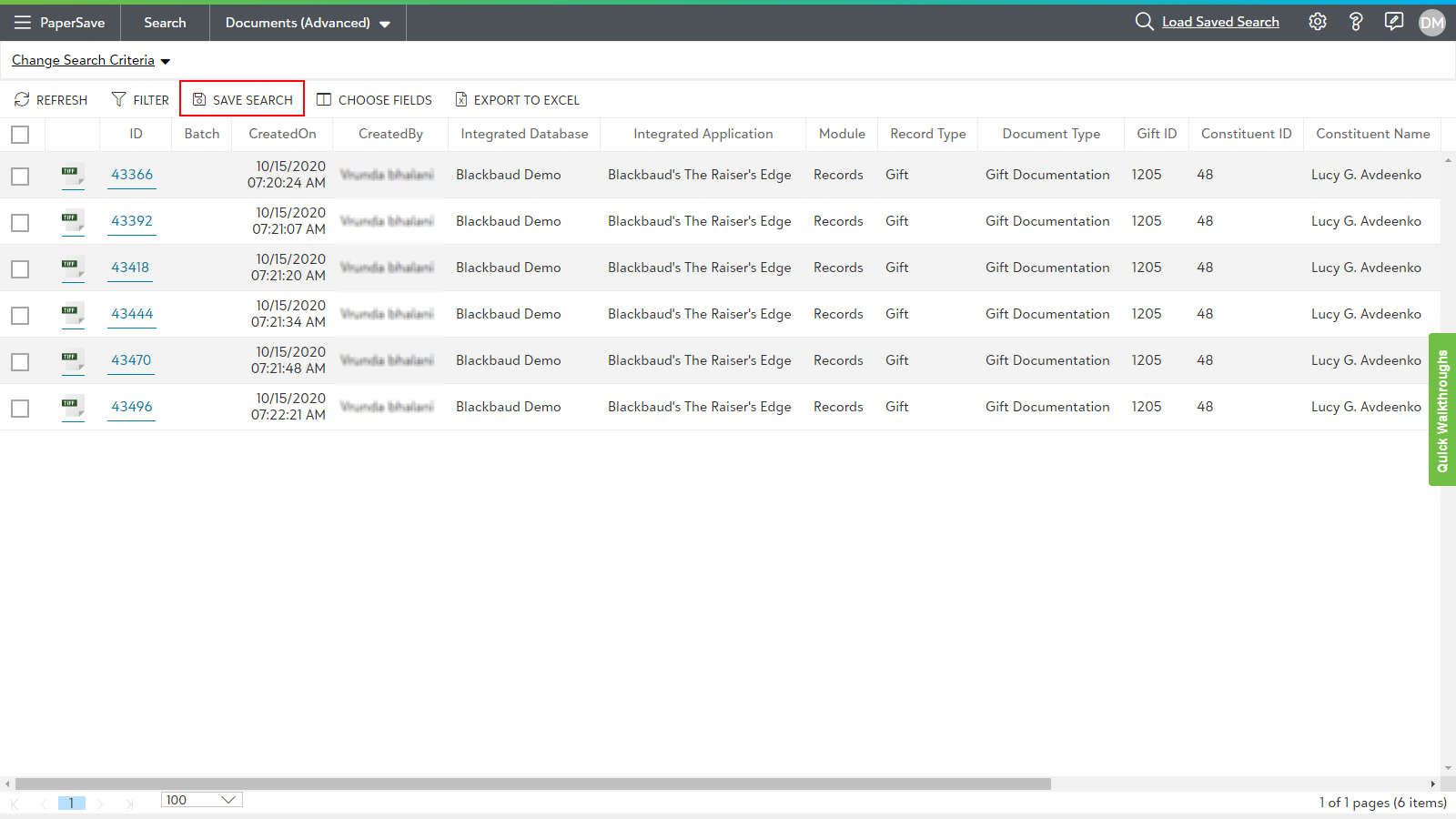 - Once you enter the Master password, your query will be saved and available for all PaperSave users, as shown below.
