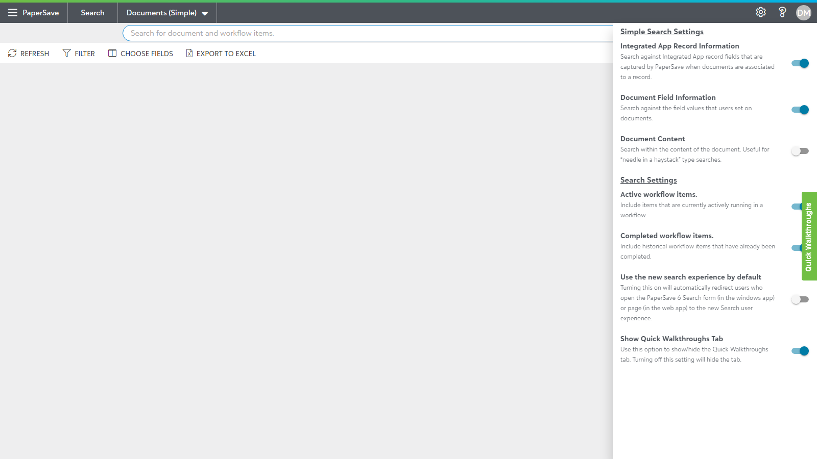 Turn ON this option to search against integrated application fields captured by PaperSave when documents are associated with an integrated application record.