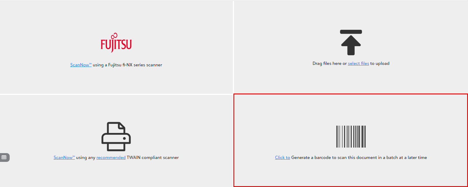 - Click on "Click to Generate a barcode to scan the document in a batch at a later time" as shown below: