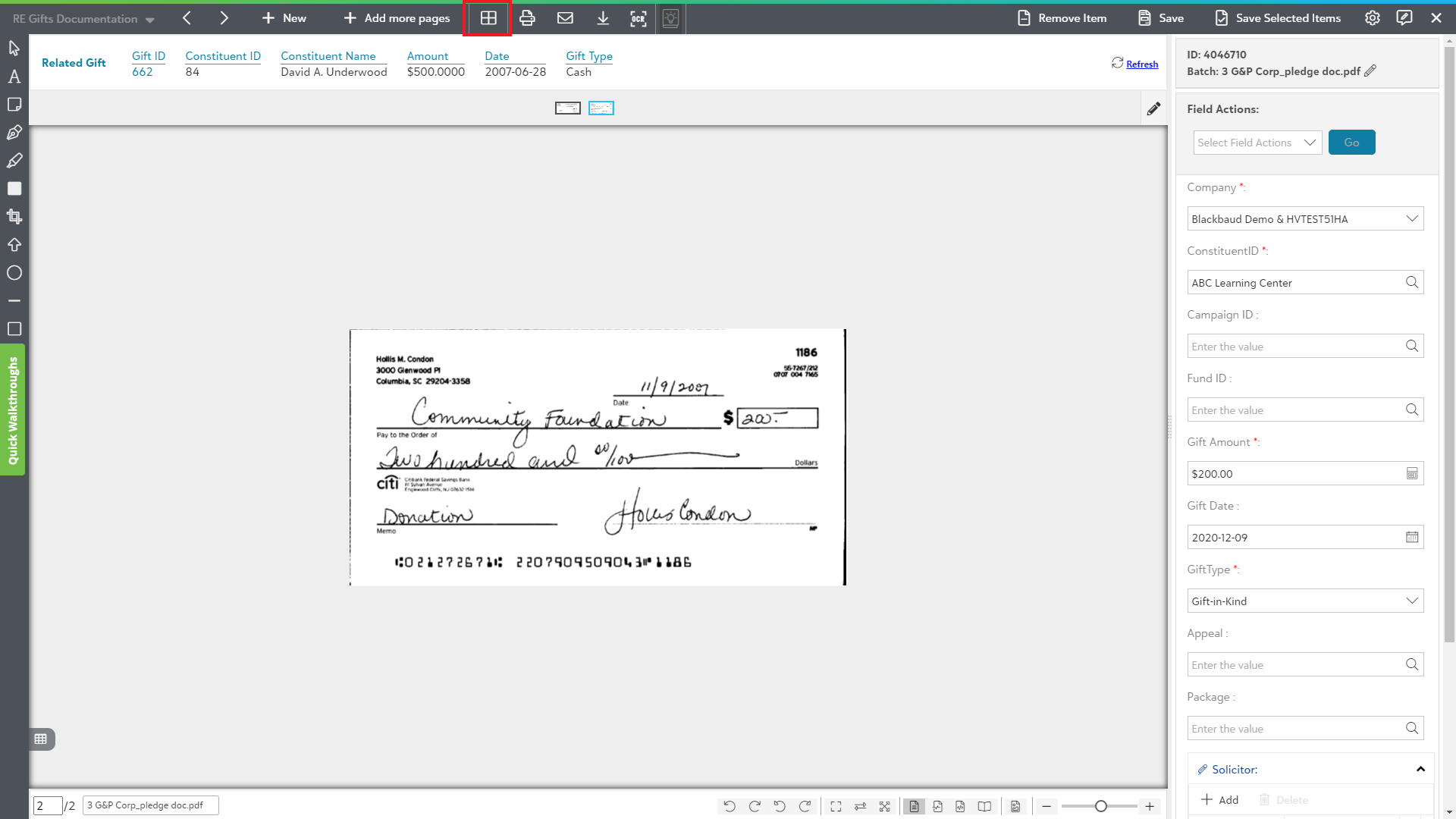 icon to access the Page manipulation view as shown in the below screen:
