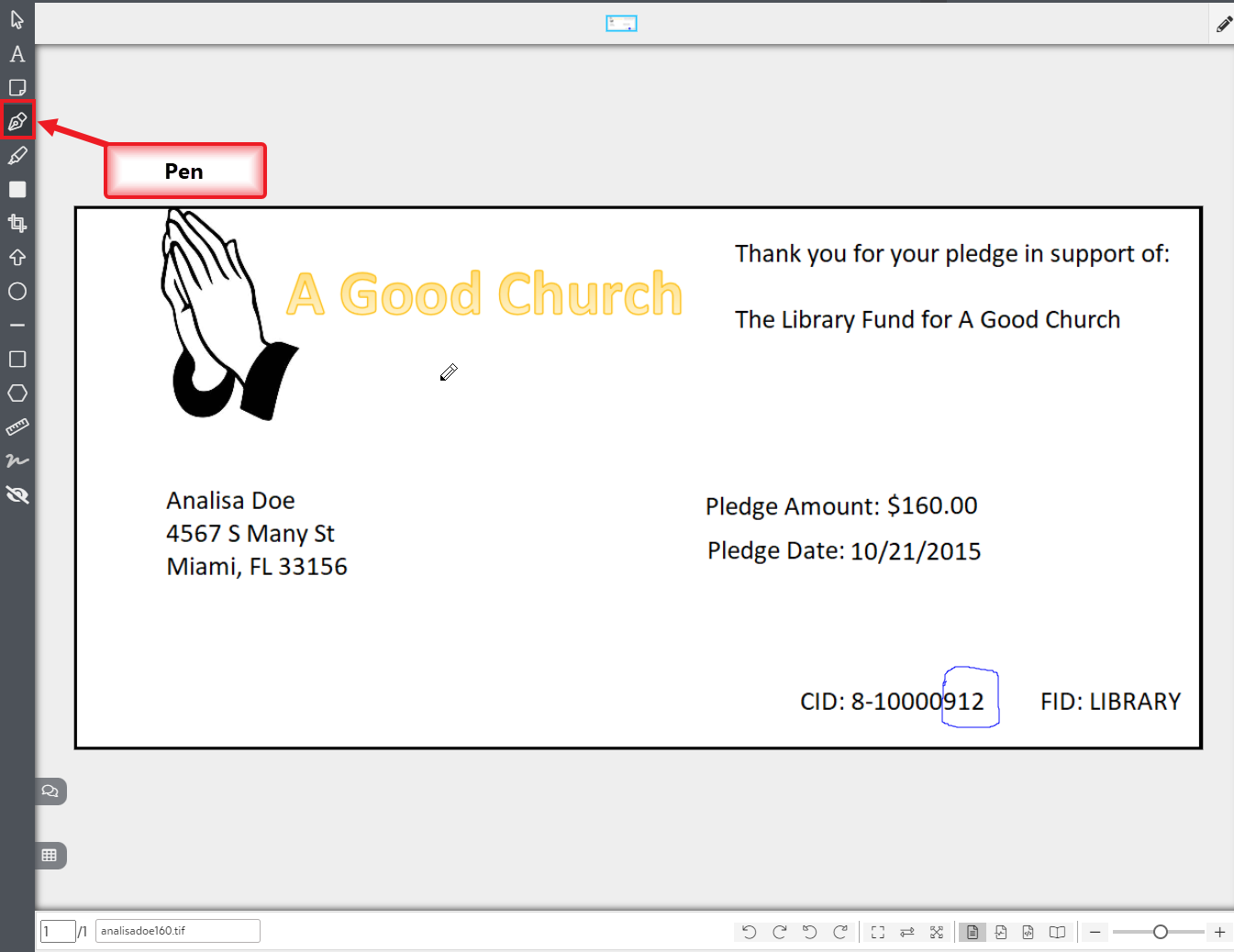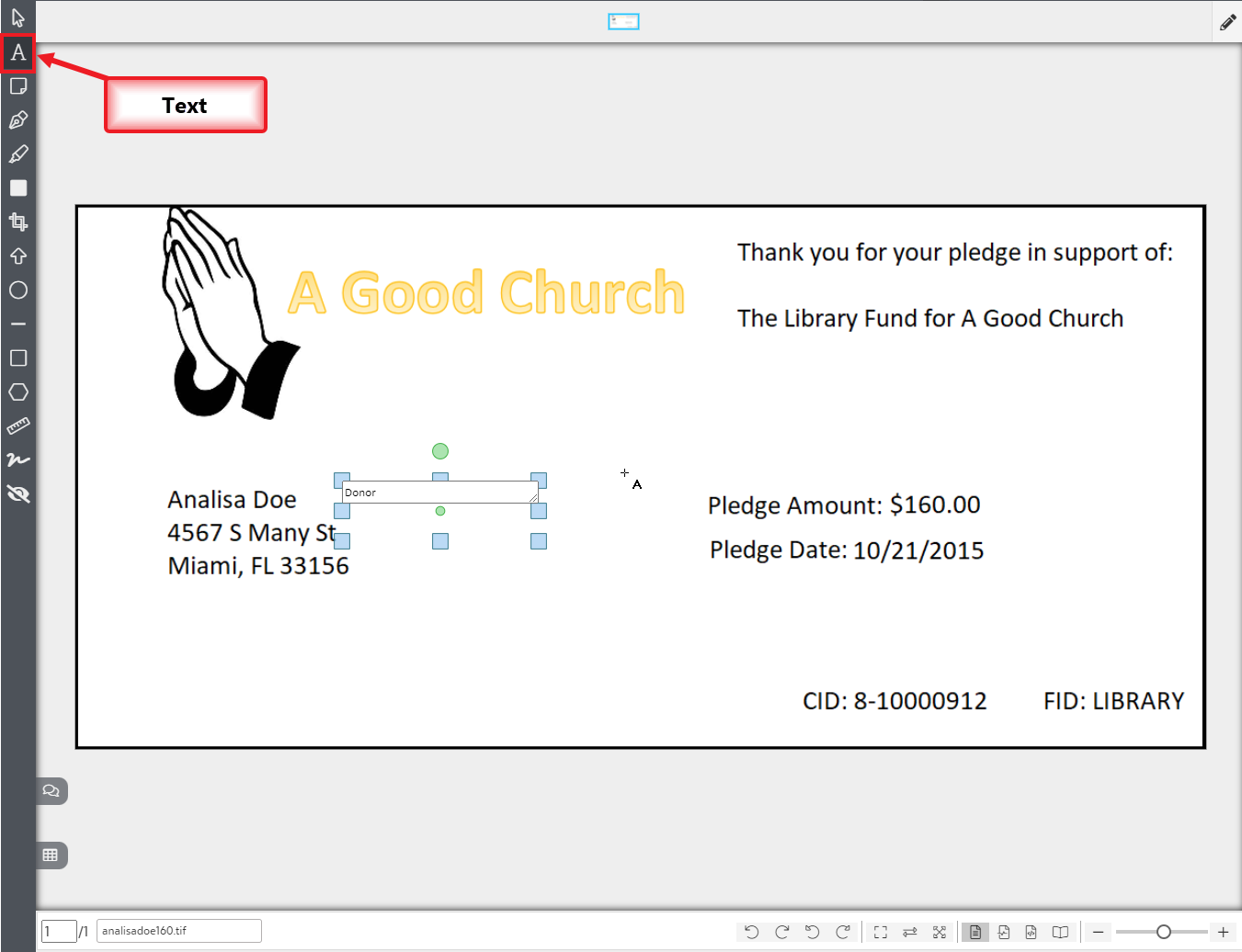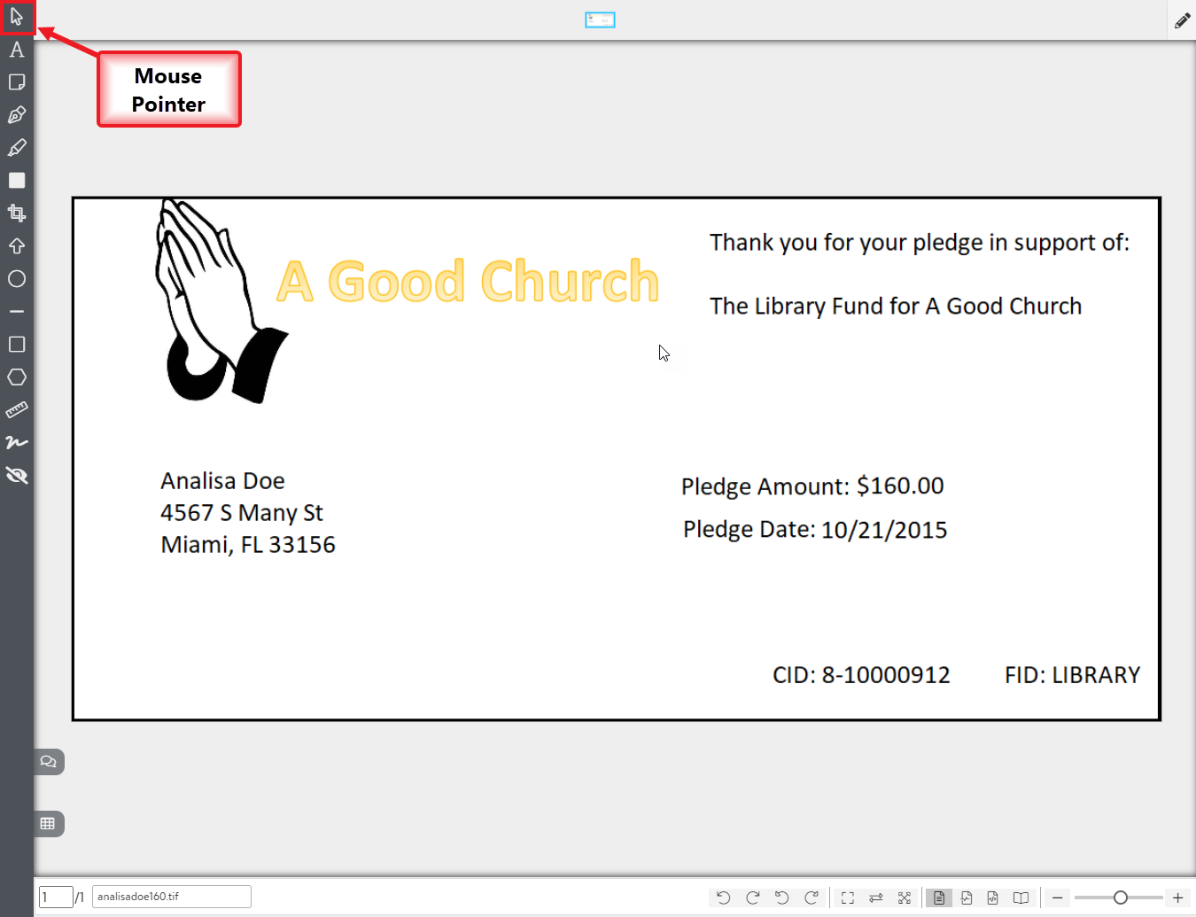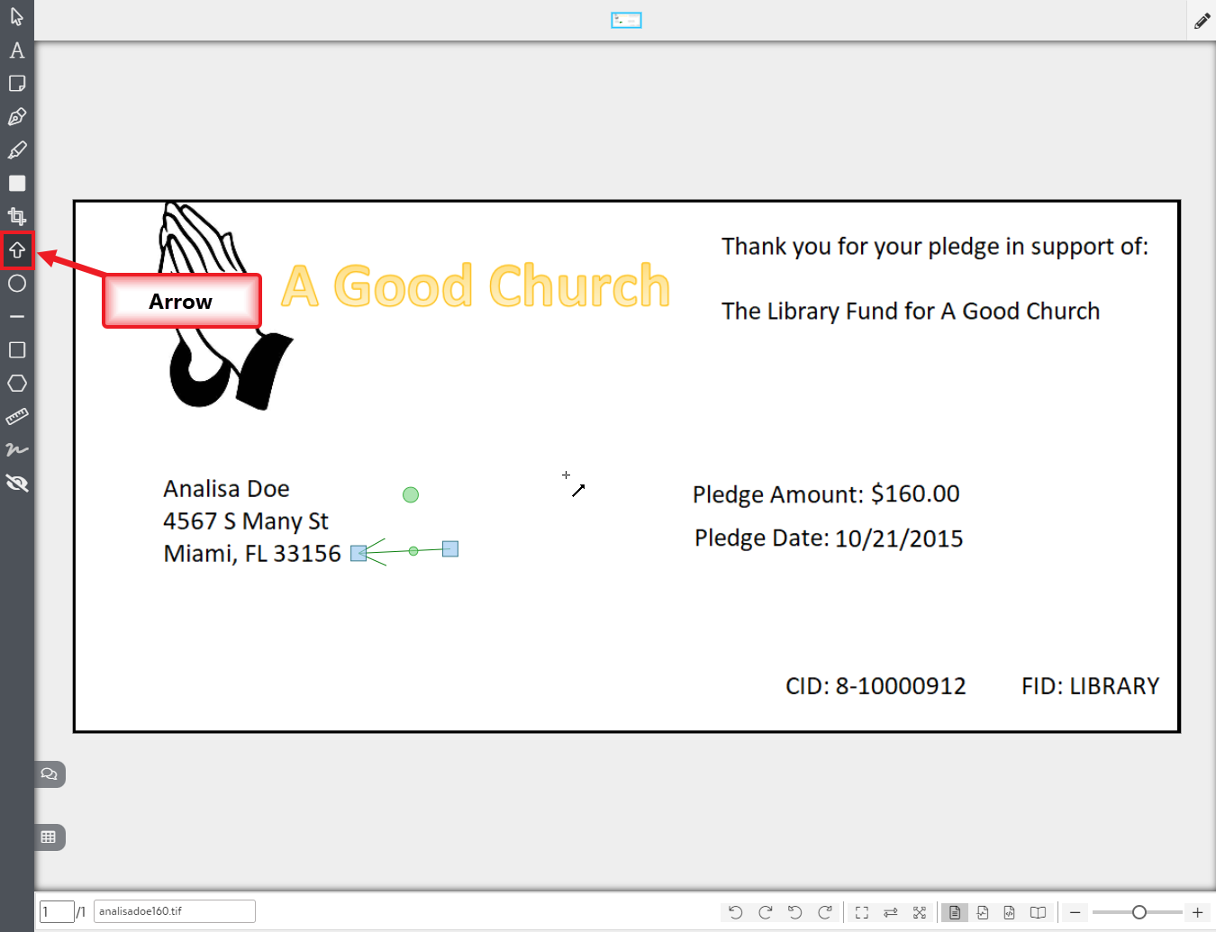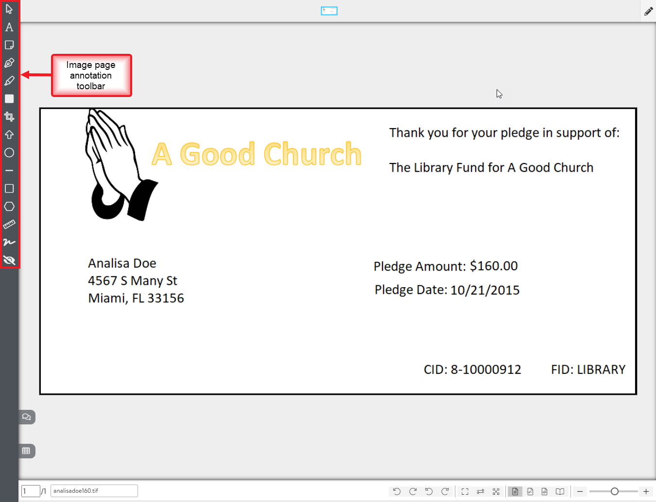Annotations are accessible from within the Image page options toolbar to the left of the item viewer’s content panel as shown below.