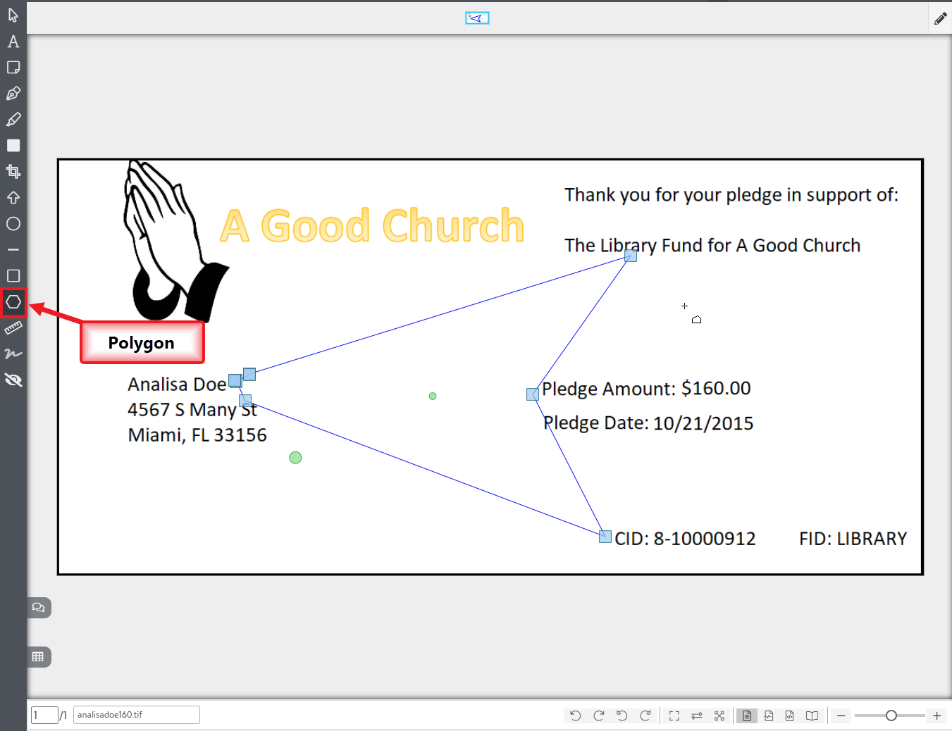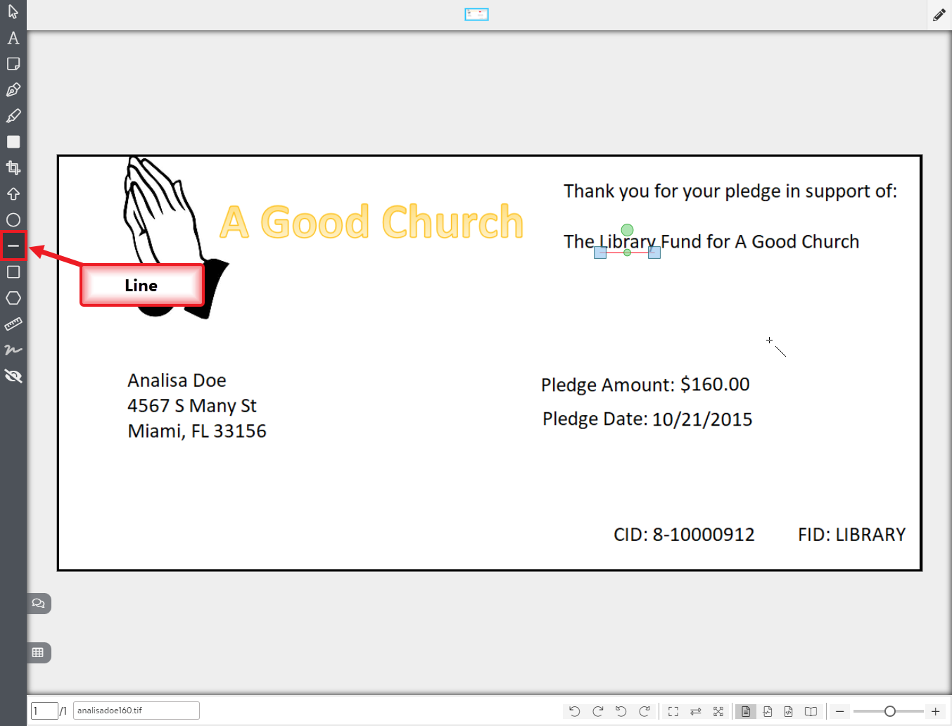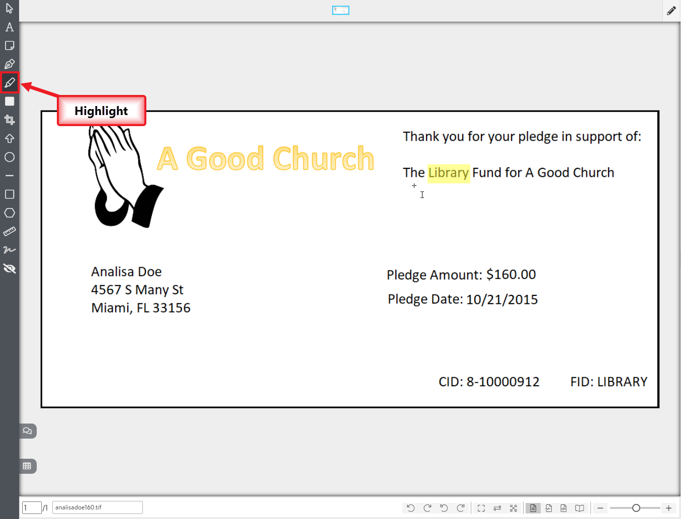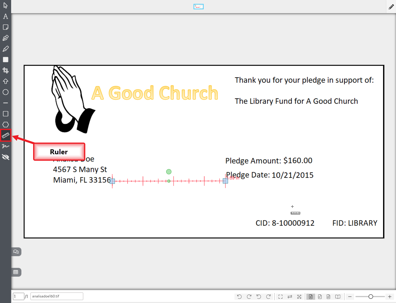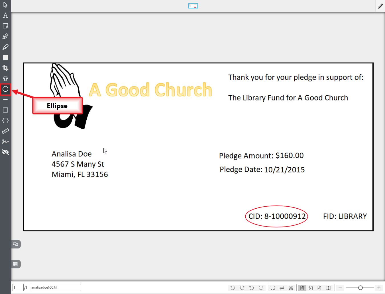 Annotations are accessible from within the Image page options toolbar to the left of the item viewer’s content panel as shown below.