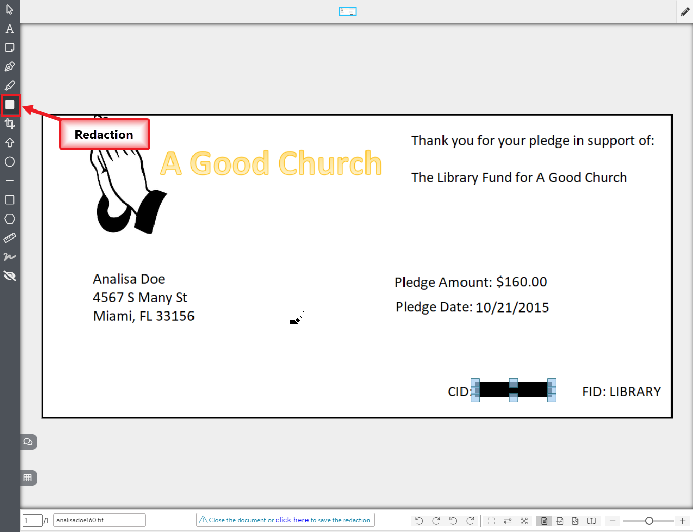 You will need to confirm the redaction once it has been applied by clicking on the "Click here" link as shown in the above figure to save the redaction changes.