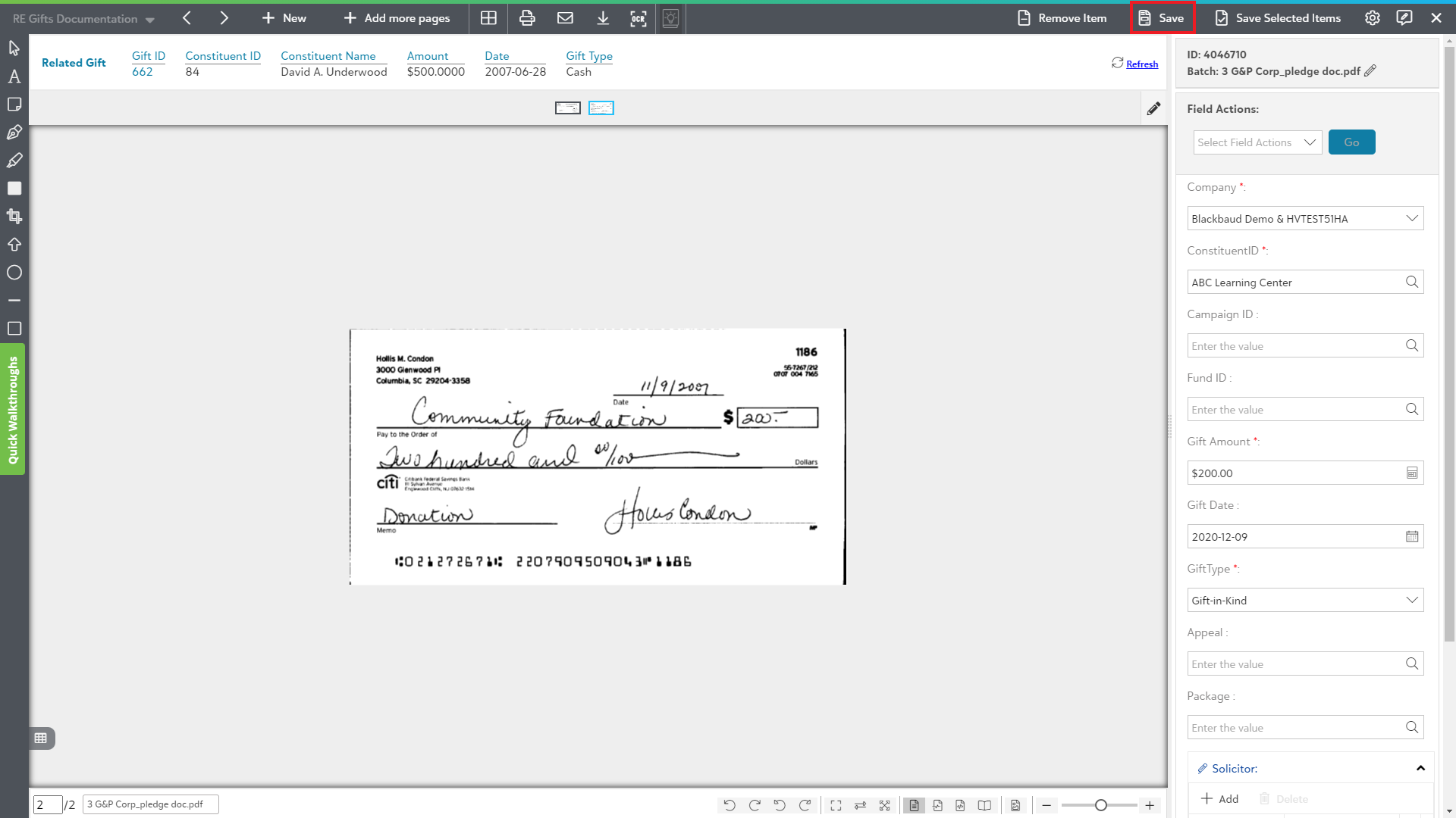 Various operations can be performed on the documents while working with them in the document viewer such as editing fields, adding annotations, saving one or more documents.