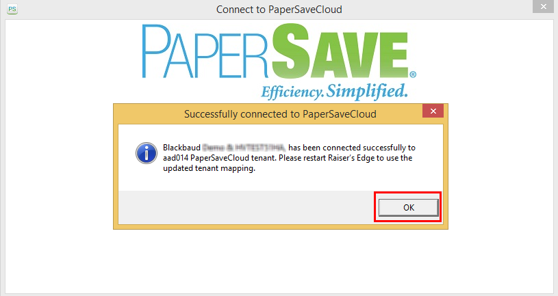 10) You will need to re-launch the Raiser’s Edge Application upon resetting the PaperSave Tenant.