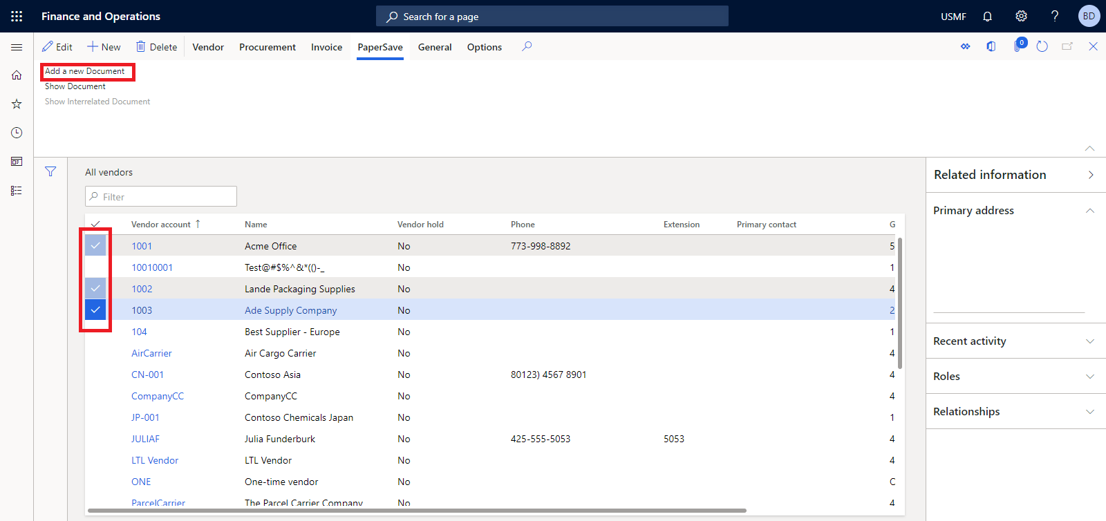 1) Select more than one or all the records from the Raiser's Edge list view, and go to PaperSave option in action pane and click on Add a new Document option, as shown in the below screen.
