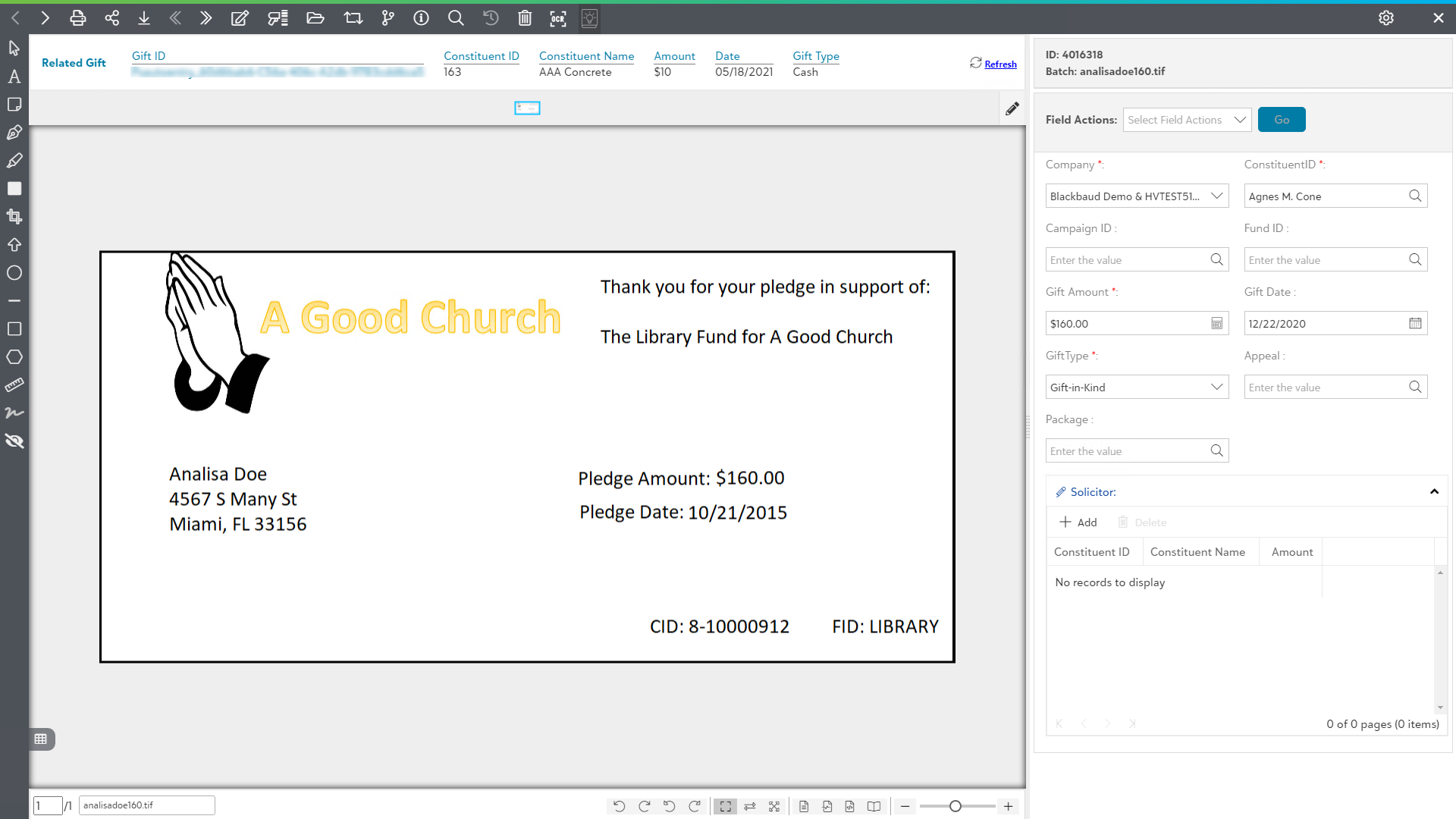 4) The interrelated documents associated with the selected Raiser's Edge record will be displayed (if they exists) in the PaperSave Document list windows.